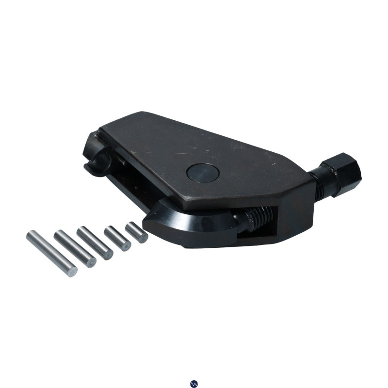 Il suffit de placer cette presse sur la charnière et de serrer le boulon pour faire sortir la goupille. Commencez par la plus petite goupille et remplacez-la par des goupilles de plus en plus longues jusqu'à ce que la goupille soit sortie.
